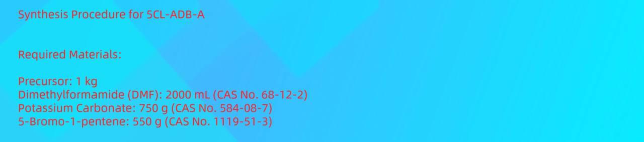 5 CL-ABD-A is a potent synthetic cannabinoid based on indazole. The formal name of 5-cl-adb-a is methyl 3,3-dimethyl-2-(1-(pent-4-en-1-yl)-1H-indazole-3-carboxamido)butanoate. The molecular weight of the substance is 357.45.5cl-adba Precursor for sale online